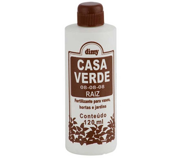 Casa Verde 08-08-08 Raiz Dimy é um fertilizante líquido, indicado para ser diluído em água e aplicado na planta em formas de regas. Sua formulação é composta de 8% de nitrogênio, 8% de fósforo e 8% de potássio.