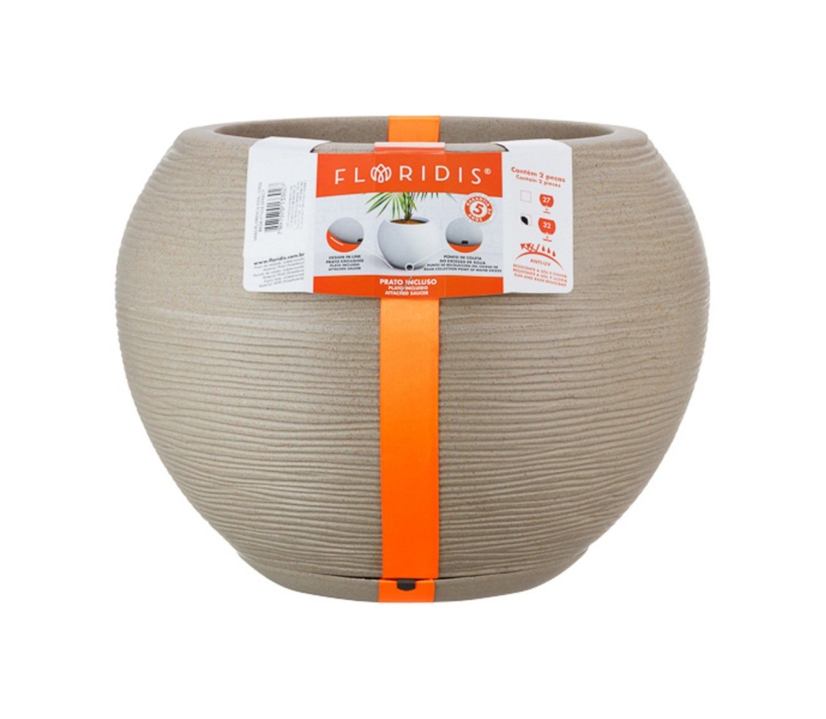 Vaso Florença Sisal Bege Stone Effect - 32cm X 32cm - Floridis