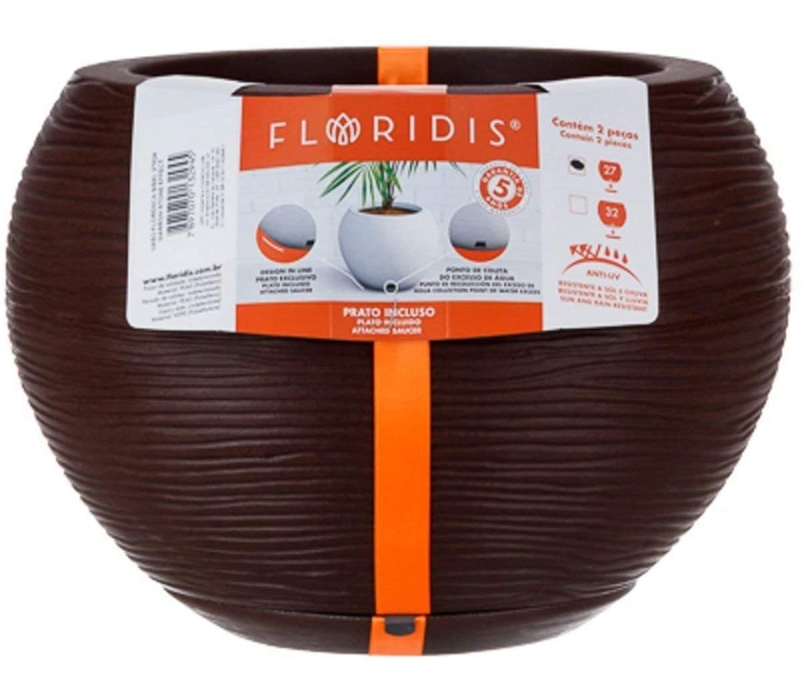 Vaso Florença Sisal Marrom Stone Effect - 32cm X 32cm - Floridis