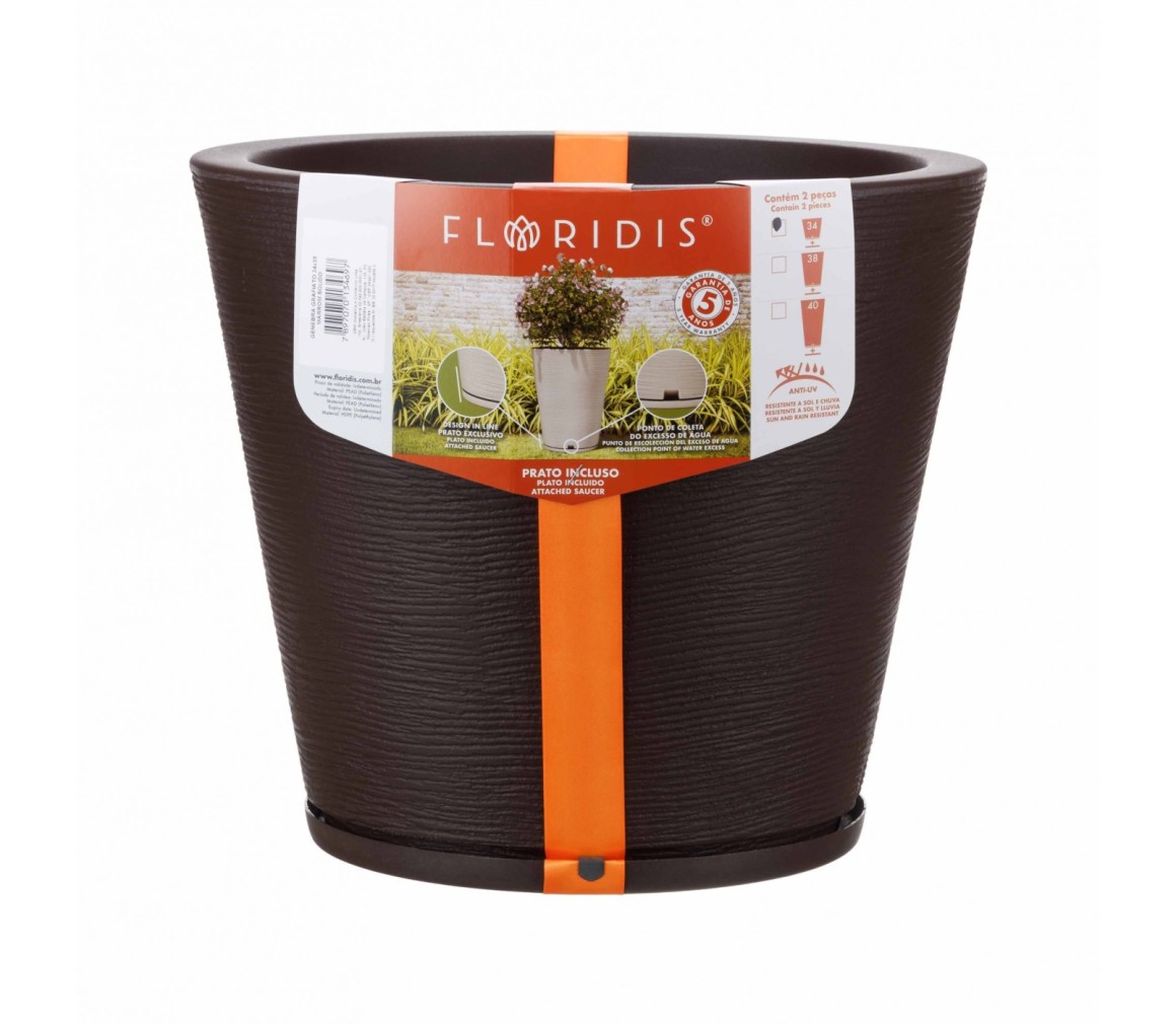 VASO GENEBRA GRAFIATO MARROM STONE EFFECT- 34cm X 35cm - FLORIDIS