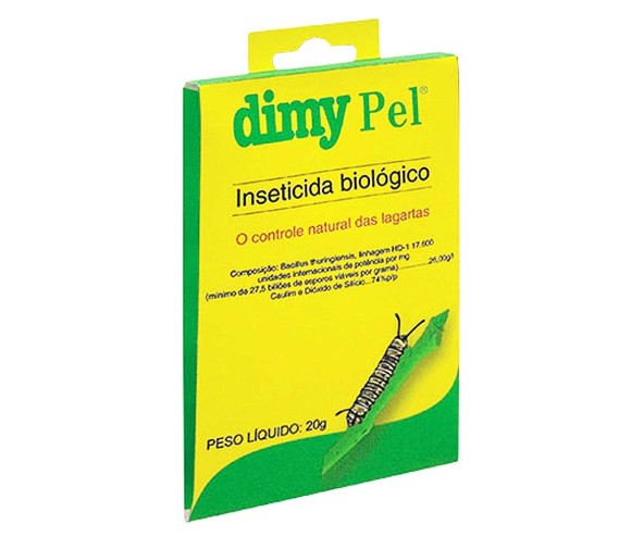 Dimypel é um produto biológico composto por bactérias encontradas na natureza que, quando ingeridas pelas lagartas junto com as folhas se reproduzem provocando uma paralisia intestinal.