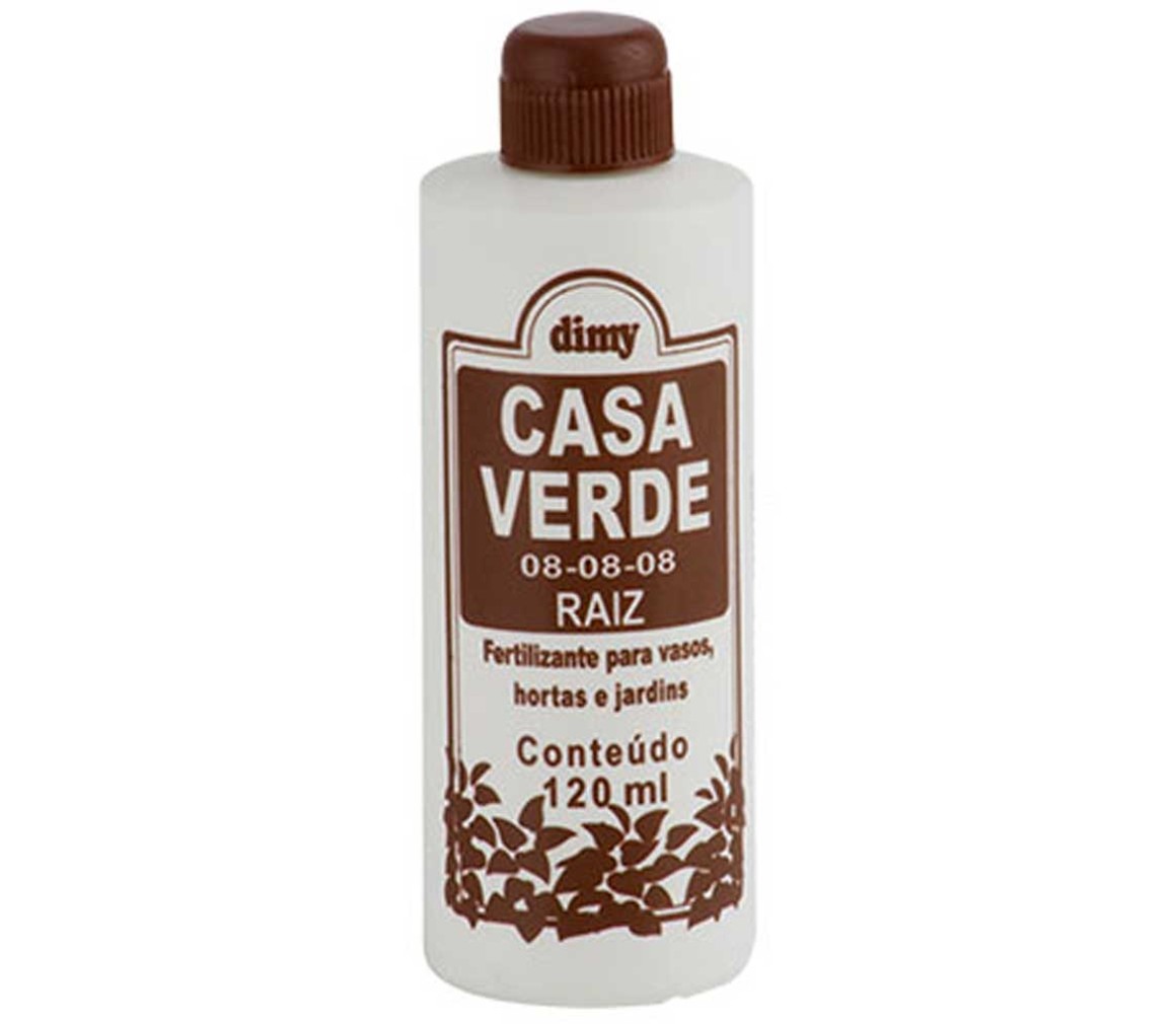Casa Verde 08-08-08 Raiz Dimy é um fertilizante líquido, indicado para ser diluído em água e aplicado na planta em formas de regas. Sua formulação é composta de 8% de nitrogênio, 8% de fósforo e 8% de potássio.