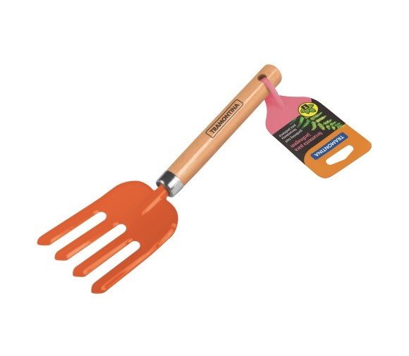 GARFO METÁLICO COM 4 DENTES PARA JARDINAGEM TRAMONTINA COM CABO DE MADEIRA